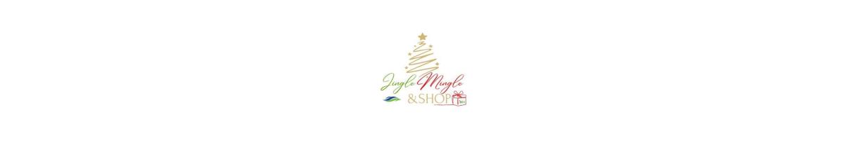 - Jingle, Mingle & Shop poster listing all participants and event details.